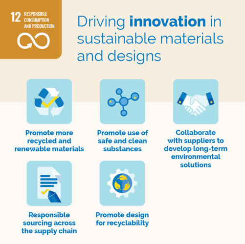 - Innovationen bei nachhaltigen Materialien und Designs vorantreiben,