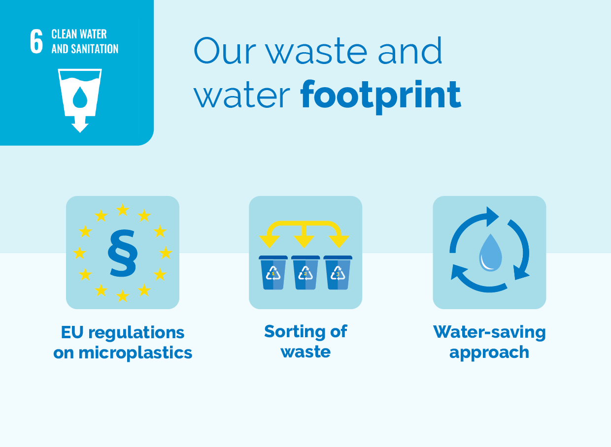 ✓ Bei der Installation neuer Maschinen und Wasseraufbereitungssysteme wurden wassersparende Geräte bevorzugt. Diese reduzieren den Ressourcenverbrauch und die Umweltbelastung.