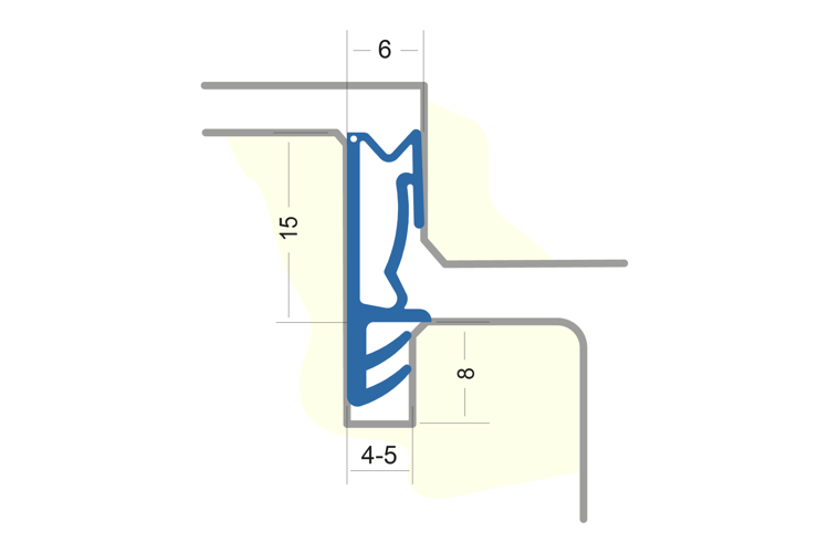 Flügelfalzdichtung mit Faden zum Ausklinken. Für Falzhöhe 15 mm, Nutbreite 5 mm Material: TPE