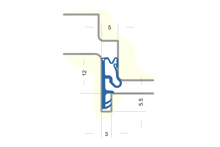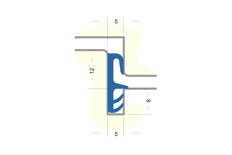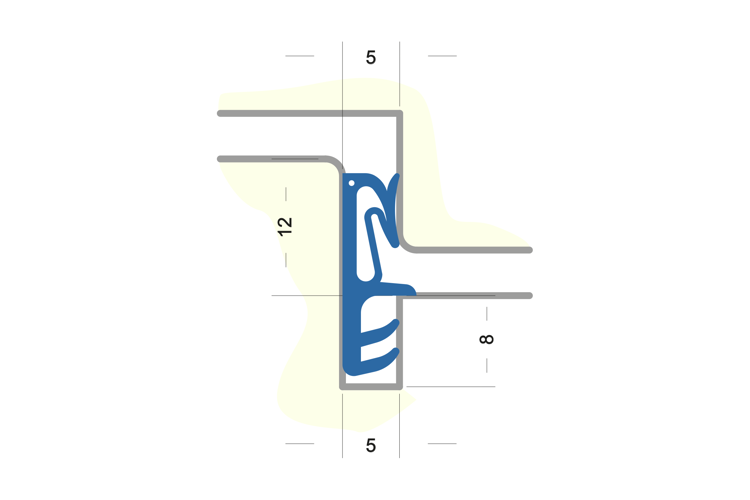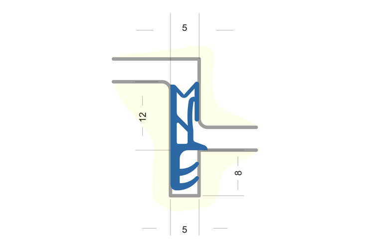 Flügelfalzdichtung ohne Faden zum Verschweißen. Für Falzhöhe 12 mm, Nutbreite 5 mm Material: TPE