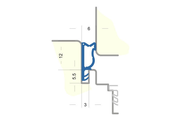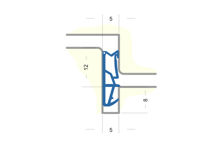 Flügelfalzdichtung mit Faden zum Ausklinken. Für Falzhöhe 12mm, Nutbreite 5mm Material: TPE
