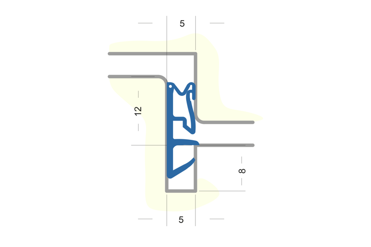 Flügelfalzdichtung mit Faden zum Ausklinken. Für Falzhöhe 12 mm, Nutbreite 5 mm Material: TPE