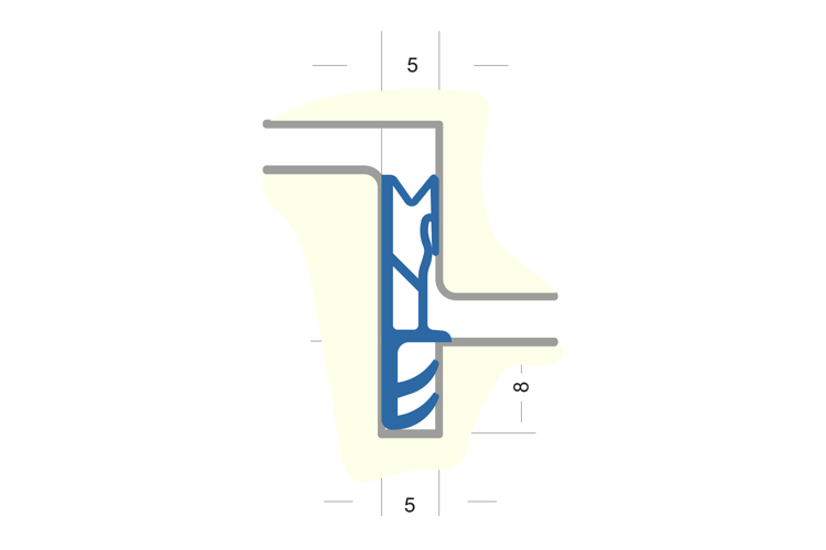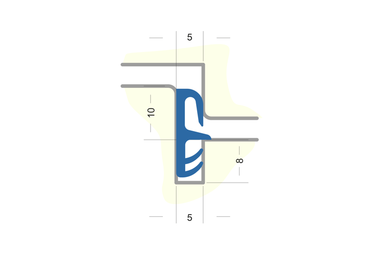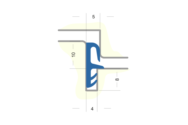 Flügelfalzdichtung ohne Faden zum Verschweißen. Für Falzhöhe 10 mm, Nutbreite 5 mm Material: TPE