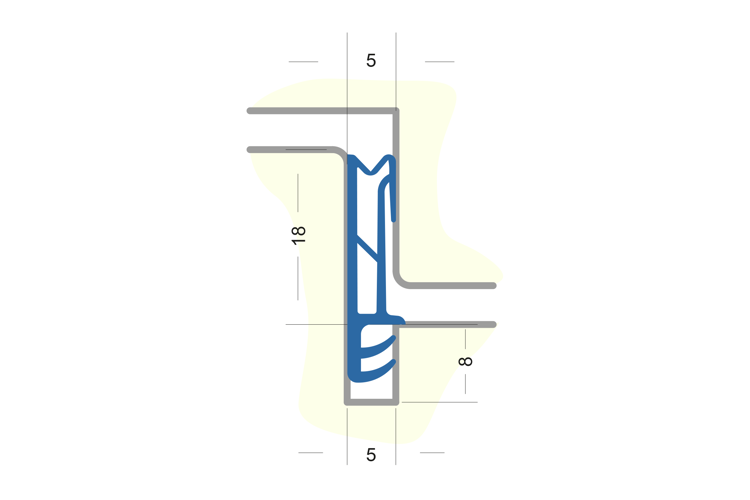 Flügelfalzdichtung ohne Faden zum Verschweißen. Für Falzhöhe 18 mm, Nutbreite 5 mm Material: TPE
