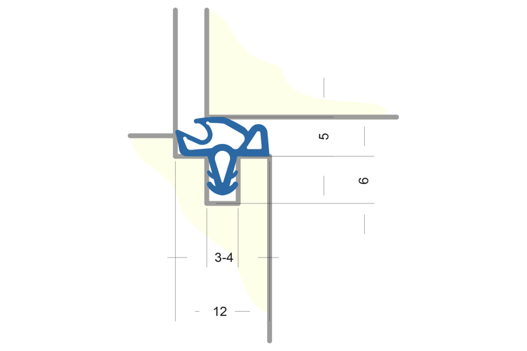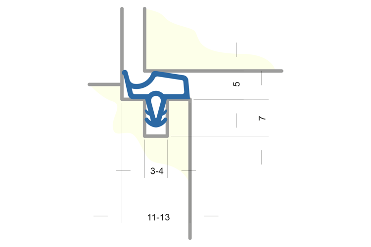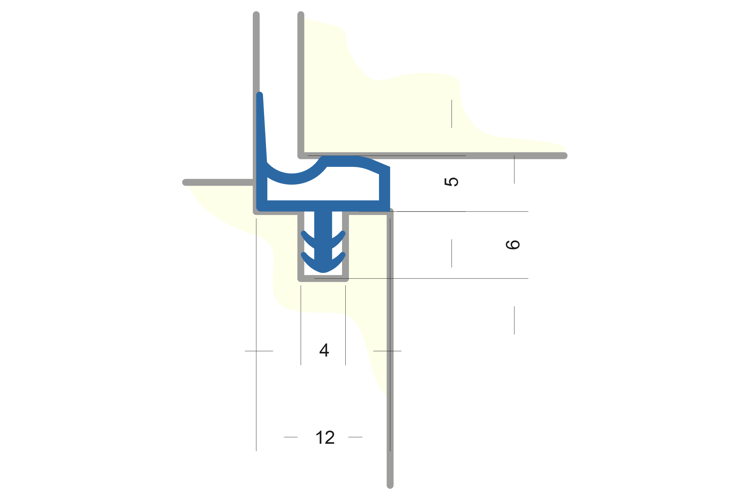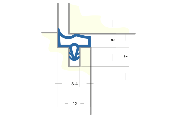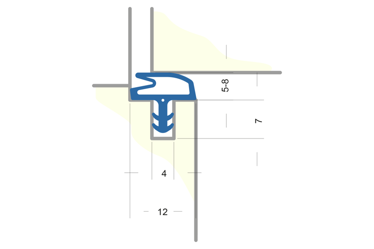 Zimmertürdichtung für den Toleranzausgleich. Für Falzbreite 12 mm, Nutbreite 4 mm Material: TPE. Auf Anfrage auch in Brandschutzqualität erhältlich.